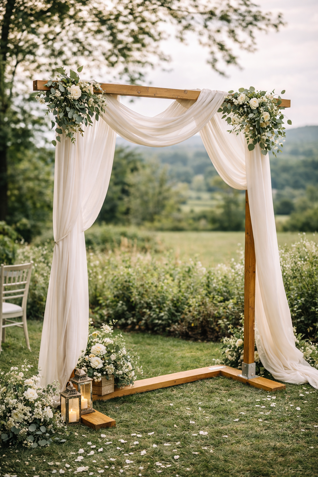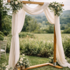 Arche en bois – style champêtre Arche en bois au style naturel, idéale pour une cérémonie laïque ou une décoration de mariage.